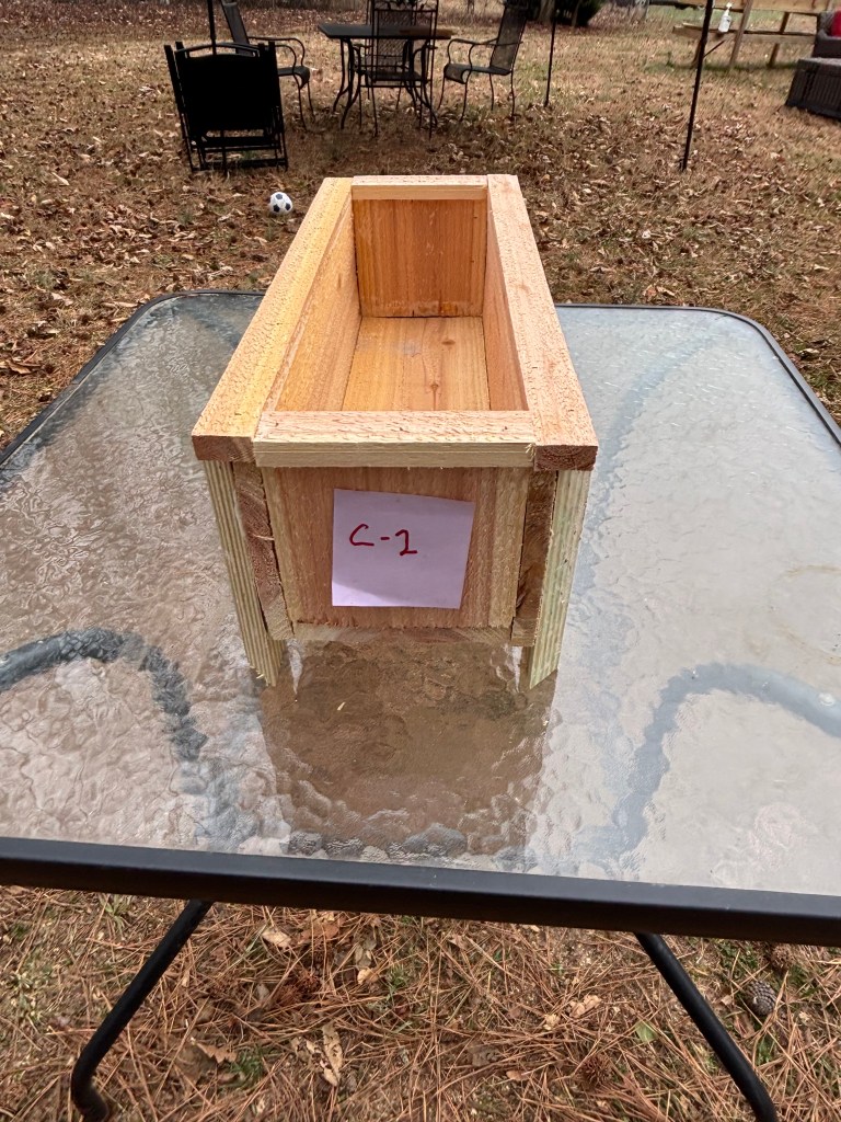 C 2 Cedar W. 5” L. 18” D. 5 1/2” 8″